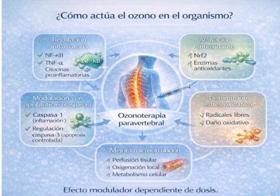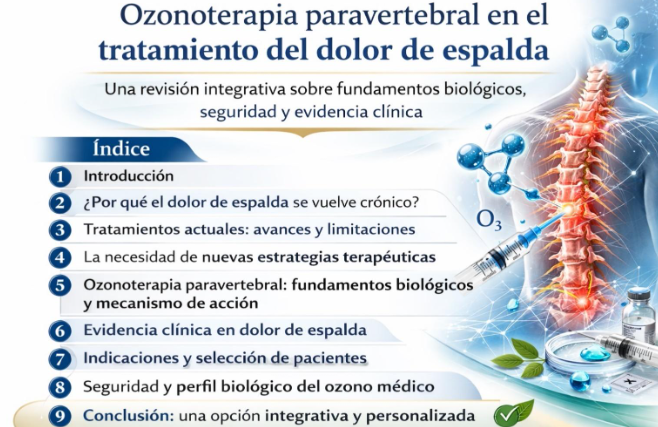 En este contexto, la ozonoterapia paravertebral surge como una opción terapéutica complementaria, con un enfoque modulador sobre la inflamación, el estrés oxidativo y los mediadores del dolor.