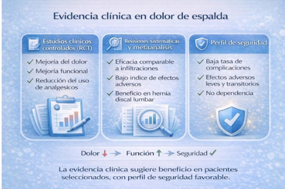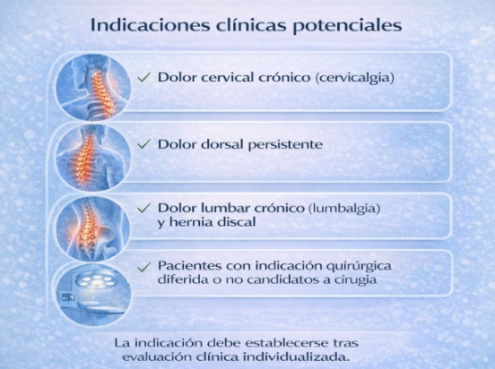 No se trata de una terapia milagrosa ni reemplaza intervenciones quirúrgicas cuando estas están claramente indicadas. Tampoco sustituye la importancia de la rehabilitación, la educación postural y el abordaje integral del paciente.