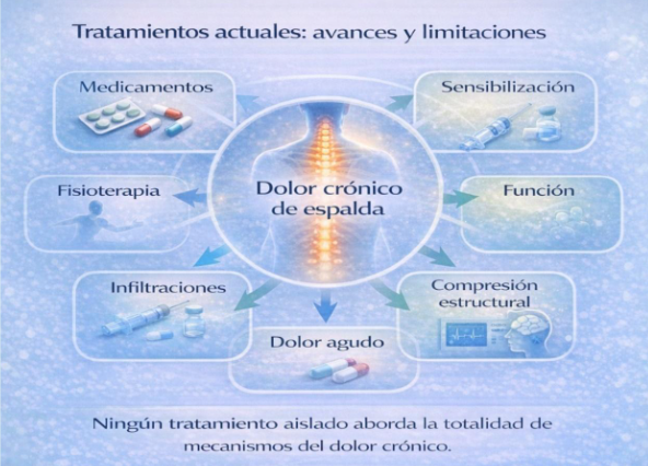 El tratamiento del dolor de espalda ha avanzado significativamente en las últimas décadas. Existen múltiples opciones terapéuticas que pueden ser muy eficaces, especialmente en fases agudas.